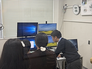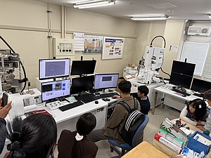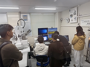 FE-EPMAと走査型電子顕微鏡(SEM)の見学と操作体験を実施。原理説明の後、実際に試料を観察していただきました。