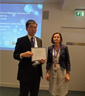 写真-3 発表証明書の授与(右は座長のEwa Dluska教授)