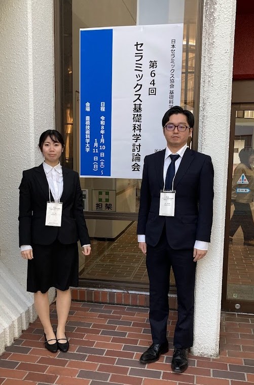 ★学会参加(2026年)★ 本研究室修士生の松本七星さん、吉本翔太郎さんが、豊橋技術科学大学にて開催された『第64回セラミックス基礎科学討論会』に参加しました。 ⇒2人とも修論審査前に、頑張りました�お疲れ様でした。ご褒美美味しかったね🍚�